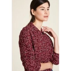 Description : chemisier à col, pattes de boutonnage cachées, poignets resserrés sur les manches. Coupe large