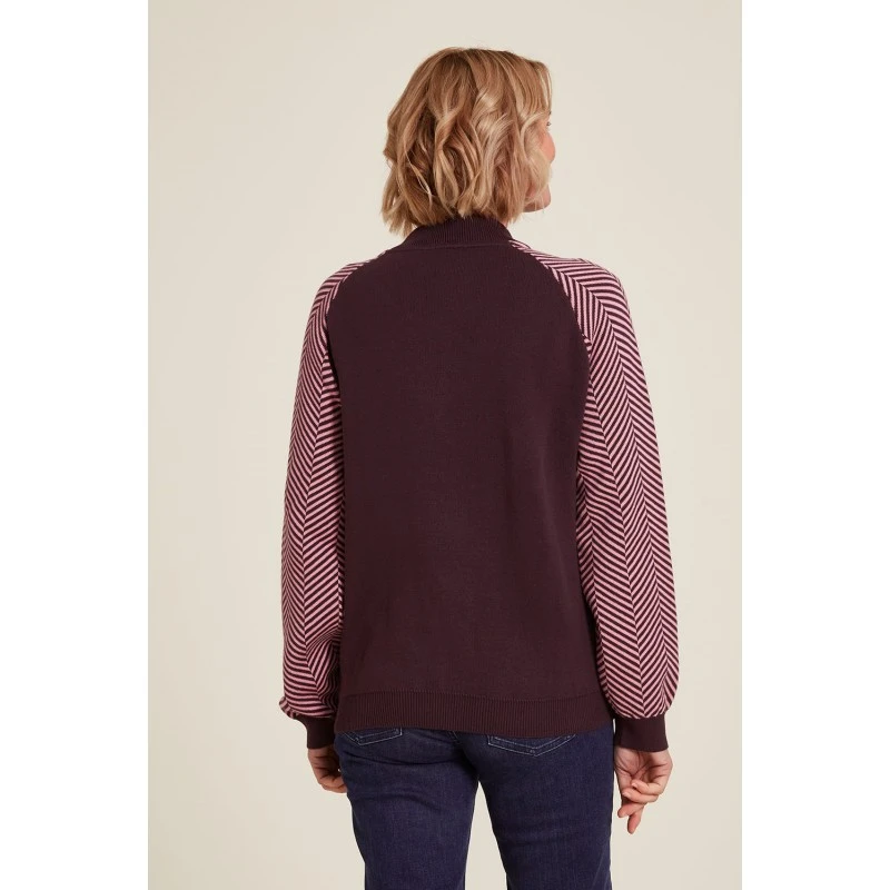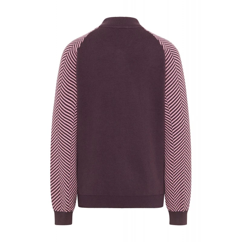 Description : poignets aux couleurs contrastées, motif tricoté sur les manches, coupe ample. Une maille Jacquard.