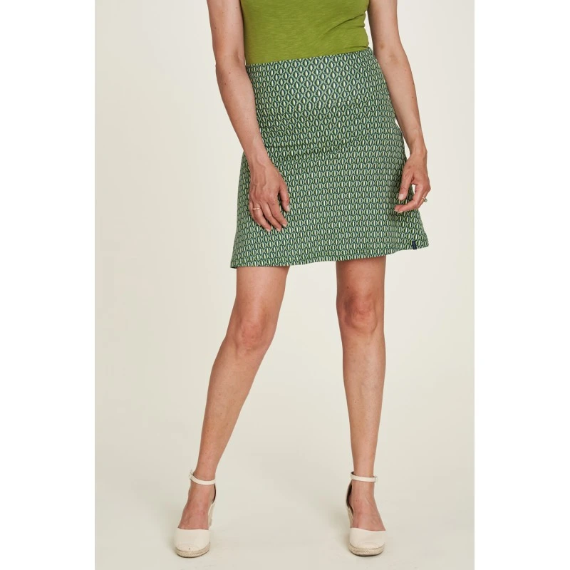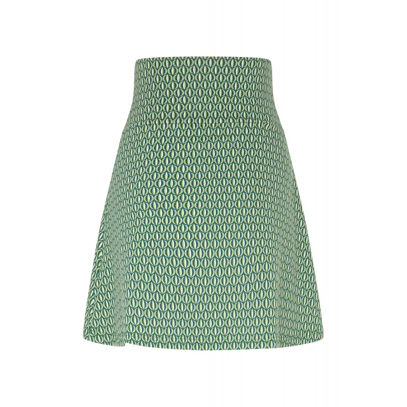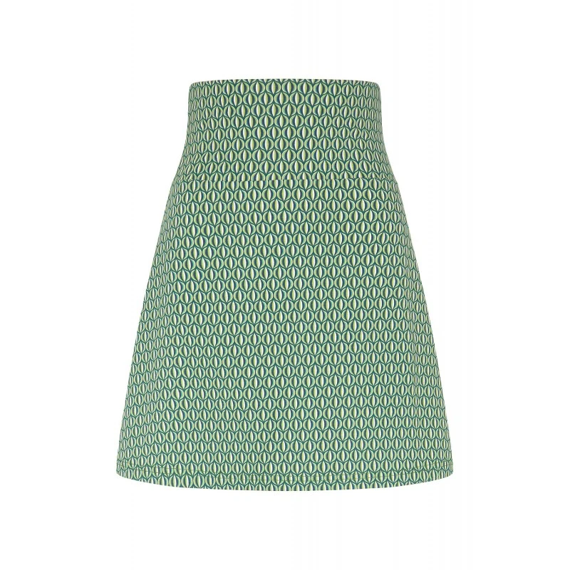 Description : jupe courte, ligne classique légÚrement évasée, taille haute et large extensible.