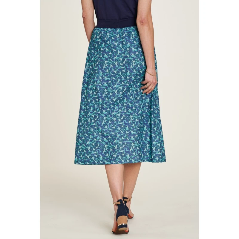 Description : des plis, deux poches latérales, une large ceinture de couleur contrastée.