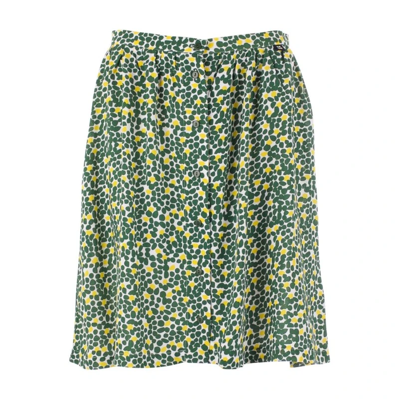 Description : jupe Ă plis devant et derriĂšre, 7 boutons de fermeture devant.