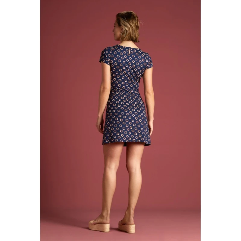 Description : Une robe mini Ă manches courtes, fermeture de type « goutte d’eau » dans le dos, col arrondi.