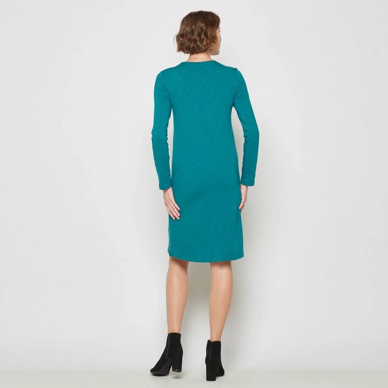 Une coupe droite, des broderie autour du col embellisse cette robe.