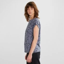 Description : tee-shirt à col rond légÚrement bateau, manches courtes pliées, coupe légÚrement carrée, légÚrement ajustée, fentes sur le cÎté.
