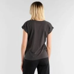 Description : tee-shirt à col rond légÚrement bateau, manches courtes pliées, coupe légÚrement carrée, légÚrement ajustée, fentes sur le cÎté.