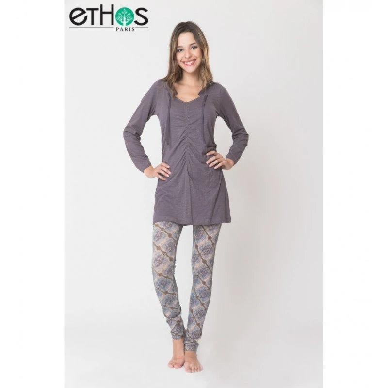 Tunique Folies en jersey de coton bio et en voile fin sur le contour du cou avec un cordon en voile qui permet de resserrer le décolleté.