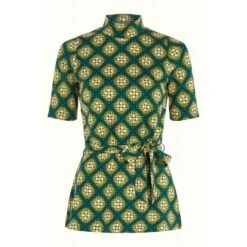 Description : col montant, manches courtes, ceinture assortie à nouer, tissu en jersey légÚrement extensible.